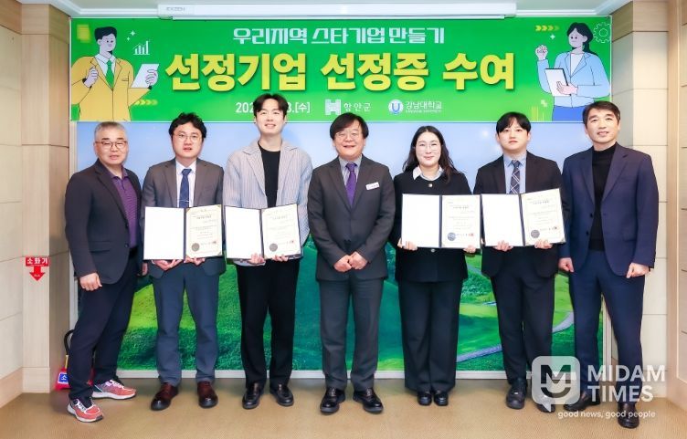 이날 수여식에는 석욱희 부군수를 비롯한 군 관계자와 사업 운영기관인 강남대학교 산학협력단 관계자, 선정기업 대표 등 10명이 참석했으며, 선정증 수여와 함께 향후 사업 추진 방향을 공유하는 시간을 가졌다.