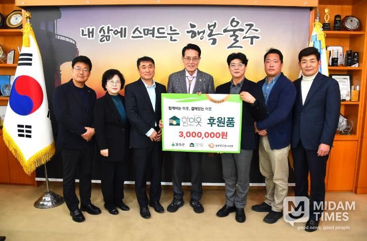 미담타임스 김준완 기자 | 사단법인 함이웃이 19일 울주푸드뱅크마켓에 300만원 상당의 후원품을 전달했다.