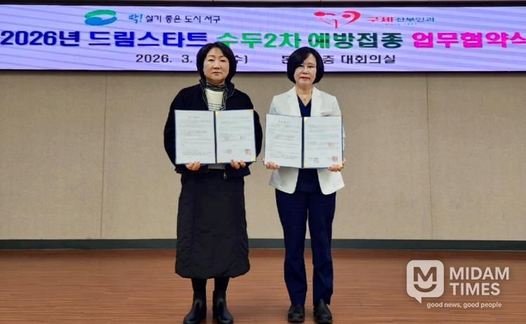 미담타임스 남혜영 기자 | 부산 서구는 지난 18일 드림스타트 취약계층 아동의 건강한 성장 지원을 위한 ‘수두 2차 예방접종 지원사업’ 추진을 위해 구세산부인과와 협약을 체결했다고 밝혔다.