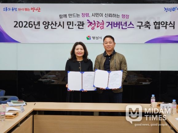 미담타임스 황명수 기자 | 양산시는 19일 투명하고 신뢰받는 행정 구현을 위해 양산시 옴부즈만과 ‘2026년 양산시 민·관 청렴 거버넌스 구축 협약’을 체결했다.