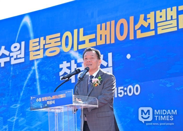 이재준 시장은 19일 권선구 탑동 540-537번지 현장에서 열린 탑동 이노베이션밸리 착공식에서 “탑동 이노베이션밸리가 수원에 미래 세대를 위한 첨단산업 생태계를 조성하는 첫걸음이 될 것”이라며 “탑동 이노베이션밸리에 들어설 첨단산업단지가 강소기업들이 성장하는 기반이 되길 바란다”고 밝혔다.