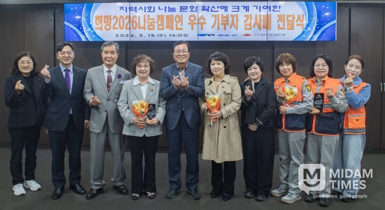 미담타임스 남혜영 기자 | 부산 영도구는 부산사회복지공동모금회(회장 이수태)와 공동으로 지난 3월 18일, 구청 대회의실에서 '희망2026 나눔캠페인 우수기부자 감사패 전달식을 개최했다고 밝혔다.