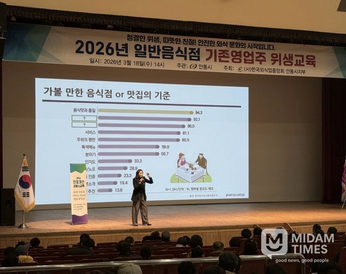 미담타임스 김준완 기자 | 안동시보건소는 3월 18일 안동시민회관 영남홀에서 지역 일반음식점 영업자 400여 명을 대상으로 친절 교육을 실시했다.