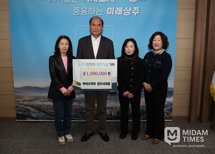 미담타임스 김준완 기자 | (사)아이코리아상주시지회는 3월 19일 상주시장학회에 장학금 100만 원을 기탁했다.