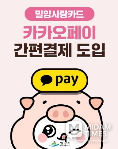미담타임스 황명수 기자 | 경남 밀양시는 밀양사랑카드 이용자의 결제 편의성을 높이기 위해 오는 23일부터 카카오페이 간편결제 서비스를 도입한다고 밝혔다.