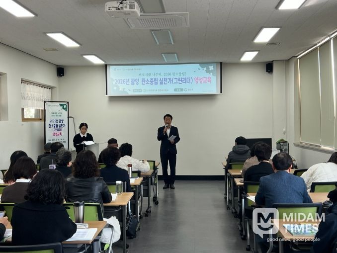 미담타임스 김준완 기자 | 광양시와 (사)전남광양기후·환경네트워크는 기후변화 대응과 탄소중립 생활 실천 문화 확산을 위한 ‘2026년 탄소중립 실천가 양성교육’을 운영한다.