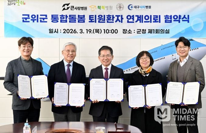 군위군 관계자는 “군위군은 입원의료기관이 없어 외부 의료기관과의 협력이 매우 중요한 지역”이라며 “이번 협약을 통해 병원 치료 이후에도 군민들이 살던 곳에서 안정적으로 생활할 수 있도록 촘촘한 통합돌봄 체계를 구축해 나가겠다”고 밝혔다.
