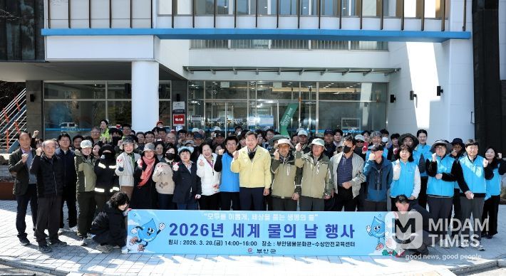 미담타임스 김준완 기자 | 부안군은 2026년 세계 물의 날을 맞아 20일 사회단체 및 유관기관과 함께 부안댐 일원 환경정화활동을 통해 깨끗한 자연 보호에 나섰다고 밝혔다.