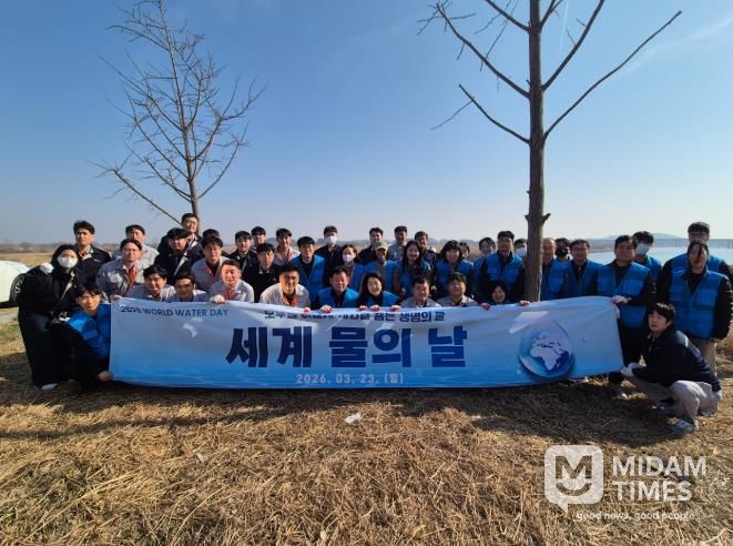미담타임스 김준완 기자 | 군산시는 지난 23일 “2026년 세계 물의 날”을 맞아 군산시 대표 입주기업인 ㈜세아베스틸과 함께 대야면 옴서감서쉼터 일원에서 만경강 정화활동을 추진했다.