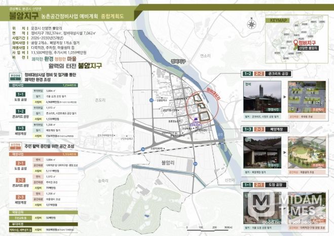미담타임스 김준완 기자 | 문경시는 농림축산식품부 공모사업인 산양면 불암지구 농촌공간정비사업에 최종선정되어 국비 67.5억 원을 포함 총 135억 원의 사업비를 확보했다고 밝혔다.