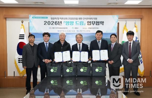 미담타임스 정주환 기자 | 인천광역시 계양구와 계양구지역사회보장협의체, ㈜풀무원푸드머스는 23일 저소득층 영유아와 돌봄이 필요한 노인가구의 건강한 식생활 지원을 위한 ‘영양드림’ 업무협약을 체결했다.