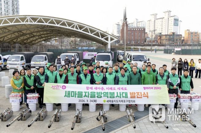 미담타임스 정주환 기자 | 박강수 마포구청장은 3월 24일 아침, 망원유수지 체육공원에서 열린 ‘2026년 새마을자율방역봉사대 발진식’에 참석해 대원들을 격려했다.