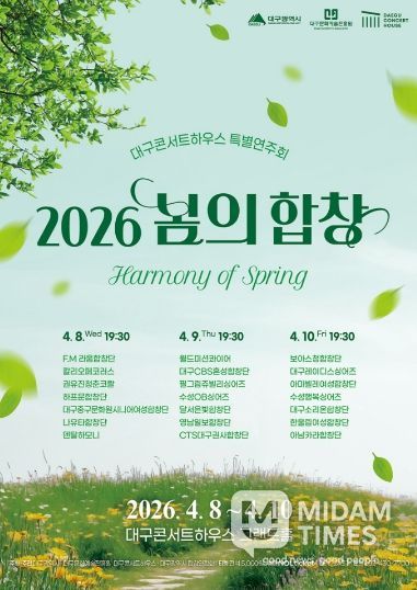 미담타임스 전해찬 기자 | 따뜻한 봄을 맞아 지역을 대표하는 아마추어 합창단들이 한자리에 모여 봄의 시작을 노래하는 대구콘서트하우스 특별연주회 ‘2026 봄의 합창’이 오는 4월 8일부터 10일까지 3일간 대구콘서트하우스 그랜드홀에서 개최된다.