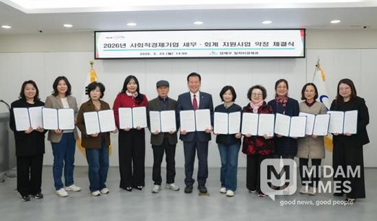 구는 지난 3월 23일 구청 소회의실에서 ‘2026년 연제구 사회적경제기업 세무·회계 지원사업 약정 체결식’을 개최하고, 선정된 10개 사회적경제기업과 지원 약정을 체결했다.