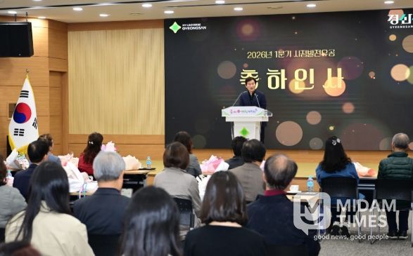미담타임스 김준완 기자 | 경산시는 3월24일 대회의실에서 지역사회 발전을 위해 묵묵히 헌신해 온 유공 시민들에게 표창패를 수여하고 감사의 뜻을 전했다.