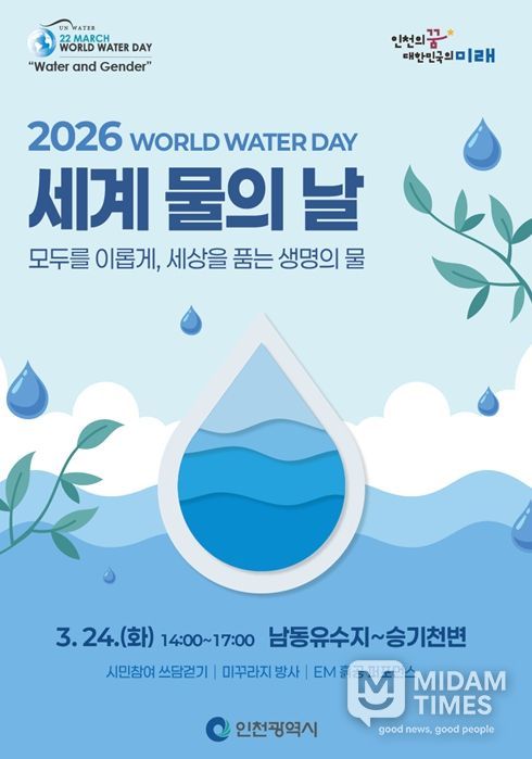 미담타임스 김준완 기자 | 인천광역시가 24일 남동유수지 일원에서‘2026년 세계 물의 날’을 기념해 시민들과 함께 발로 뛰는 환경정화 캠페인‘쓰담걷기(플로깅)’행사를 개최했다.