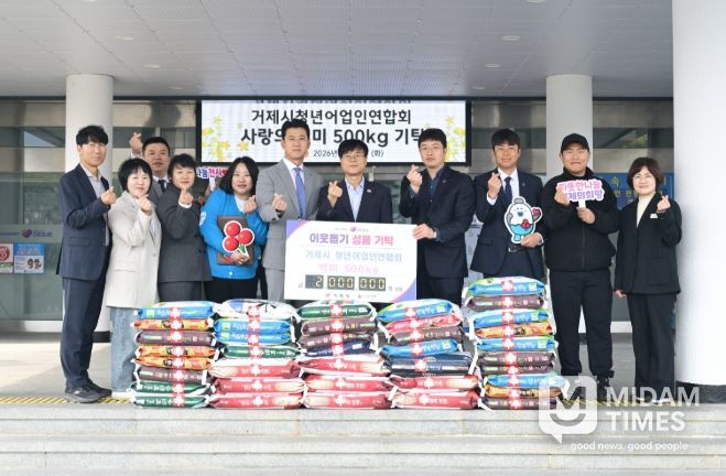 미담타임스 황명수 기자 | 거제시청년어업인연합회(회장 황지현)는 지난 24일 회장 이·취임식을 기념하여 지역 내 어려운 이웃을 돕기 위한 백미 500kg(이백만 원 상당)을 거제시에 기탁하며 따뜻한 나눔을 실천했다.