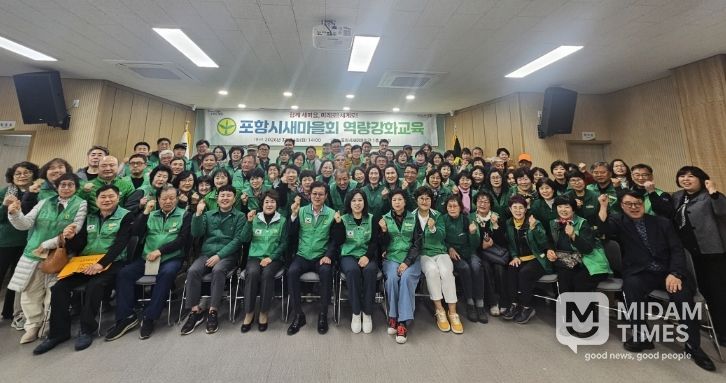미담타임스 김준완 기자 | 포항시새마을회는 24일 포항시새마을회관에서 지역 새마을지도자들의 실무 능력 향상과 조직 결속력을 높이기 위한 ‘새마을지도자 역량 강화 교육’을 실시했다.
