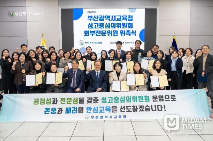 미담타임스 남혜영 기자 | 부산광역시교육청은 지난 19일 오후 교육청 국제회의실에서 ‘성고충심의위원회 외부전문위원 위촉식 및 역량강화 연수’를 열고 23명의 외부전문위원에 대한 위촉장을 수여했다고 밝혔다.
