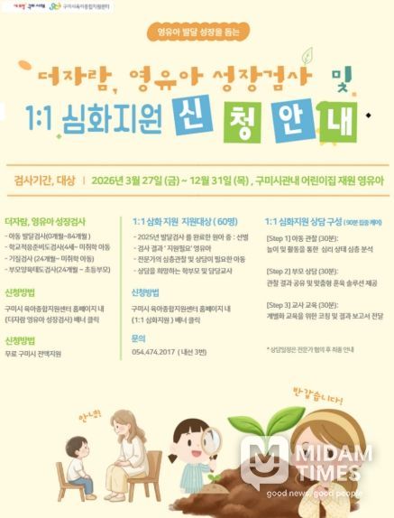 미담타임스 김준완 기자 | 구미시가 영유아 발달 문제에 대한 조기 대응에 나선다.