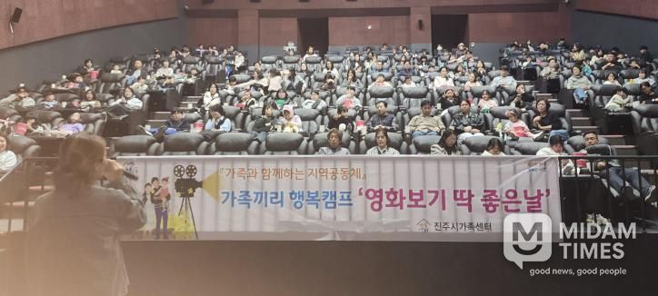 미담타임스 황명수 기자 | 진주시가족센터는 지난 24일 가좌동 엠비씨네에서 가족 간의 소통과 건전한 가족문화 조성을 위해 ‘영화 보기 딱! 좋은 날’ 행사를 개최했다고 밝혔다.