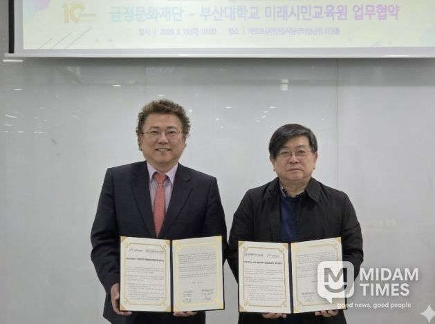 미담타임스 남혜영 기자 | 재단법인 금정문화재단과 부산대학교 미래시민교육원은 지난 19일, 부산 지역의 문화·예술 및 평생교육 저변 확대를 위한 업무협약(MOU)을 체결했다고 밝혔다.