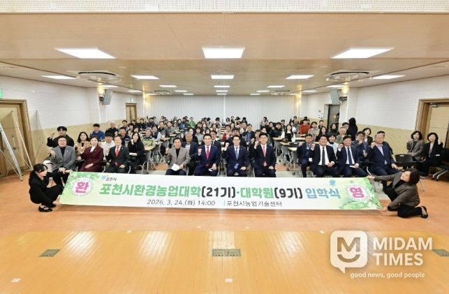 미담타임스 정주환 기자 | 포천시는 지난 24일 포천시농업기술센터 대강당에서 신입생과 내빈 등 100여 명이 참석한 가운데 ‘2026학년도 포천시환경농업대학(22기) 및 대학원(9기) 입학식’을 개최했다.