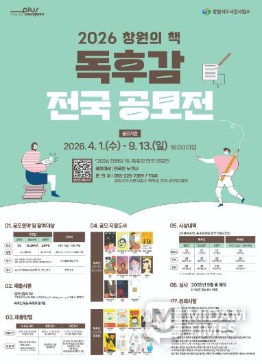 박진열 창원시 도서관사업소장은 “2026 창원의 책 독후감 전국 공모전에 관심 있는 분들의 많은 참여를 부탁드리며 같은 책을 함께 읽는 경험을 통해 세대가 공감하고 소통하는 계기가 되기를 바란다.”고 말했다.
