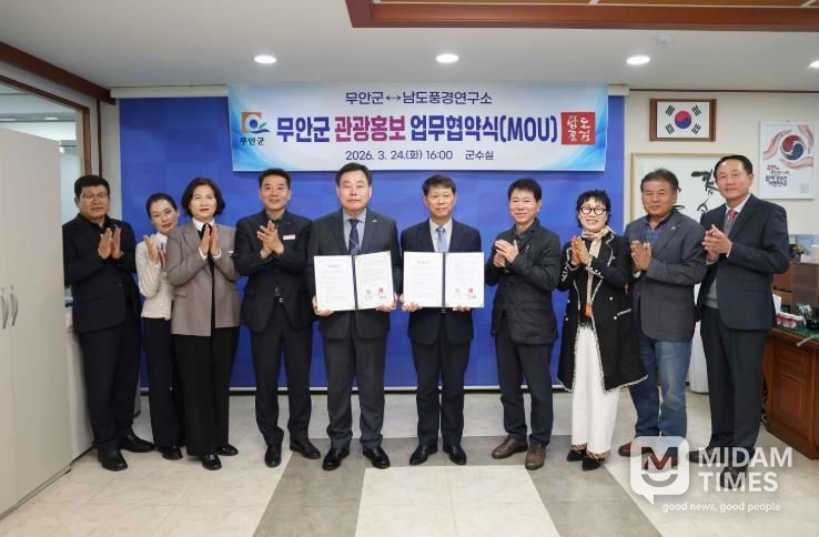 미담타임스 정인화 기자 | 무안군은 지난 24일 군수실에서 남도지역 풍경정보를 전국에 제공·기록하는 단체인 남도풍경연구소와 자연·문화·관광자원 홍보를 위한 업무협약(MOU)을 체결했다.