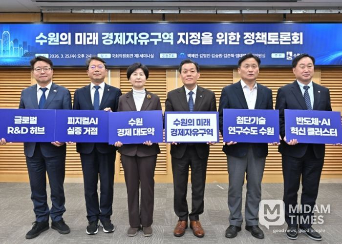 이재준 시장은 25일 국회의원회관 제1세미나실에서 열린 ‘수원 경기경제자유구역 지정을 위한 정책토론회’에서 “수원 경기경제자유구역에 연구 중심 기업을 유치해 ‘첨단산업 생태계’를 만들어 갈 것”이라며 “수원은 첨단기술 연구 분야에 집중해 ‘연구는 수원에서 제조는 지방에서’를 실현하고, 대한민국 균형발전에 앞장서겠다”고 밝혔다.