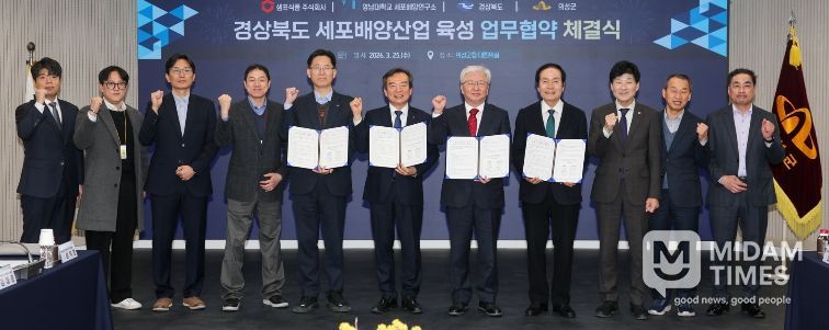 미담타임스 김준완 기자 | 경상북도는 25일 의성군청 대회의실에서 샘표식품, 영남대학교 세포배양연구소, 의성군과 함께 ‘세포배양 배지 산업 육성을 위한 업무협약(MoU)’을 체결했다.