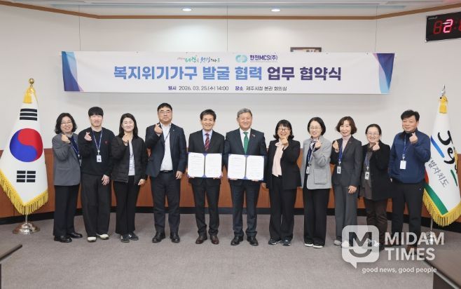 미담타임스 정인화 기자 | 제주시는 3월 25일 시청 본관 회의실에서 한전MCS 제주지사(지사장 황성태)와 ‘복지위기가구 발굴 협력’ 업무 협약을 체결했다.