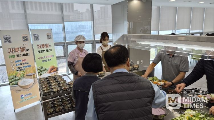 미담타임스 김준완 기자 | 충북도는 25일 충북도, 충북교육청, 충북경찰청, 충북농협본부, 시군 등 도내 15개 기관(구내식당)이 동시 참여하는 ‘충북쌀(가루쌀) 소비촉진 행사’를 추진했다.