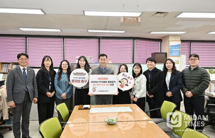 미담타임스 김준완 기자 | 울산 중구가 행정안전부 주관 ‘2025년 적극행정 종합평가’에서 울산에서 유일하게 우수기관으로 선정됐다.