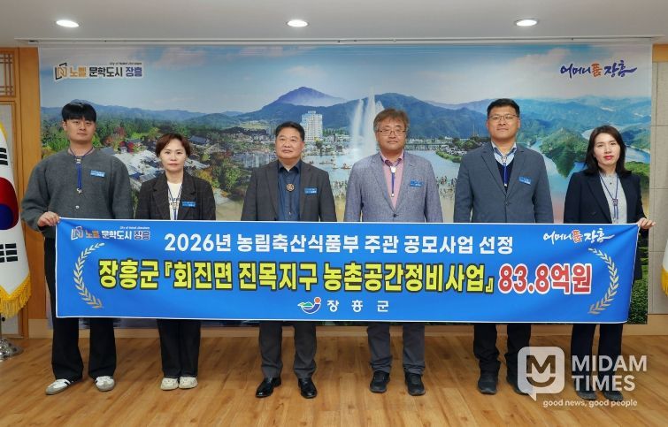미담타임스 정인화 기자 | 장흥군이 농림축산식품부가 주관하는 2026년 농촌공간정비사업‘ 공모에 전남에서 유일하게 최종 선정돼 사업비 83.8억원을 확보했다고 밝혔다.