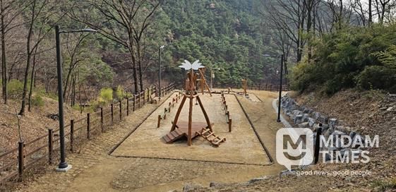 이번 정비로 짚라인, 건너기 놀이대, 그네 등 숲 놀이터가 새로 조성됐으며, 목계단, 휀스, 안내판 등이 설치돼 숲길 이용 편의를 크게 높였다.