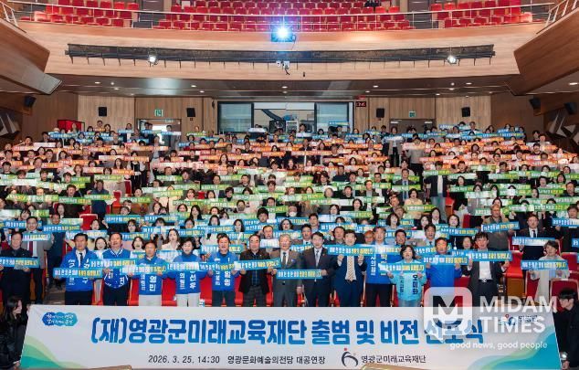 미담타임스 정인화 기자 | (재)영광군미래교육재단이 지난 25일 '영광군미래교육재단 출범 및 비전선포식'을 개최하고, 미래인재 양성과 지속 가능한 교육지원 체계 구축을 위한 힘찬 출발을 알렸다.