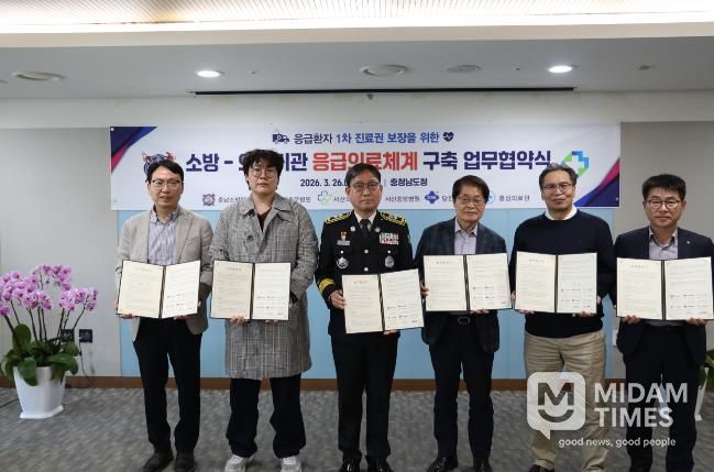 미담타임스 정인화 기자 | 충남소방본부는 26일 도청에서 도내 5개 응급의료기관과 ‘충남소방-의료기관 응급의료체계 구축 업무협약’을 체결했다.