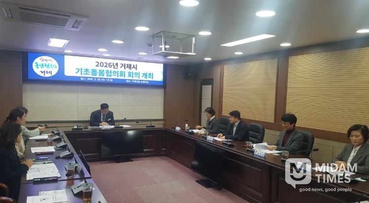 미담타임스 황명수 기자 | 거제시는 지난 3월 25일 거제시청 소회의실에서 기초돌봄협의회 위원 8명이 참석한 가운데 온종일 돌봄을 활성화 하고 돌봄시설 간 유기적인 협력체계를 구축하기 위해 '2026년 거제시 기초돌봄협의회 회의'를 개최했다고 밝혔다.