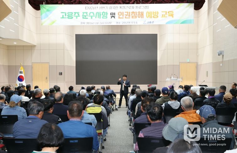 미담타임스 정인화 기자 | 고흥군은 26일 군청 우주홀에서 외국인 계절근로자 제도의 안정적 운영을 위해 2026년 상반기 계절근로자 프로그램 고용주 교육을 실시하고, 근로환경 개선과 인권 보호를 위한 지원 대책을 추진하고 있다고 밝혔다.