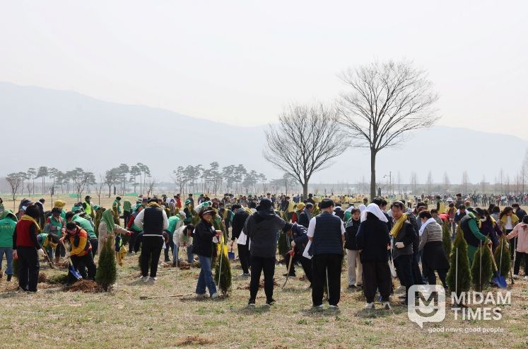 이날 참가자들은 황산공원에서 이팝나무 외 4종, 총 1,500주를 심으며 도심 속 녹지 확충과 탄소중립 실천의 의미를 나눴다. 아울러 ‘내 나무 갖기 행사(친환경화분 1,500개)와 삼색 소원지 달기’ 등 시민 체험 프로그램도 함께 운영해 식목일의 의미를 보다 쉽고 친근하게 공감할 수 있도록 했다.