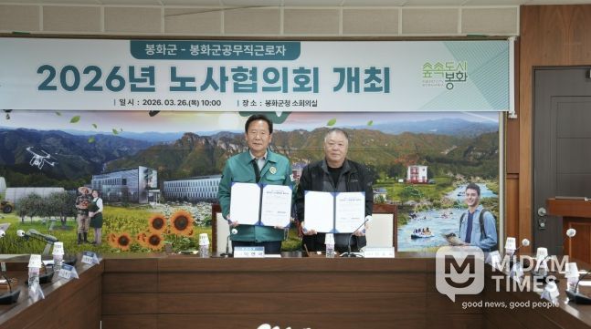 미담타임스 김준완 기자 | 봉화군과 봉화군공무직근로자 노사 양측 각각 4명의 위원이 참석한 가운데 3월 26일 군청 소회의실에서 2026년도 노사협의회를 가졌다.