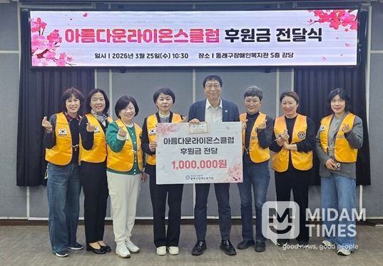 최정주 회장은 “봄을 맞아 어려운 이웃들에게 희망을 전하고자 동래구장애인복지관에 성금을 기탁했다”라며 “앞으로도 아름다운라이온스클럽은 지역사회 곳곳에 실질적인 도움을 줄 수 있는 나눔 활동을 이어가겠다”라고 말했다.