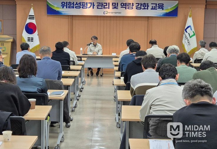 미담타임스 전해찬 기자 | 대구공공시설관리공단은 3월 26일 산업재해 예방과 안전문화 정착을 위해 대명동 공단 본사에서 CEO 주관 ‘위험성평가 관리 및 역량강화 교육’을 실시했다.