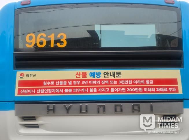군은 주민들이 일상 속에서 자연스럽게 산불 예방의 중요성을 접할 수 있도록 마을버스 광고를 비롯해 산불예방 다짐 캠페인 등 여러 방식의 홍보를 이어가고 있다.