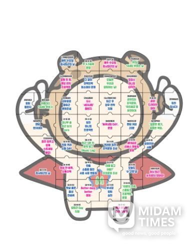 군은 실천과제의 지속적인 실행을 위해 전 부서의 참여로 함께 만드는 조직문화라는 의미인 합천군 캐릭터 ‘별쿵이’ 모양을 활용한 퍼즐형 포스터를 제작·배부했다.