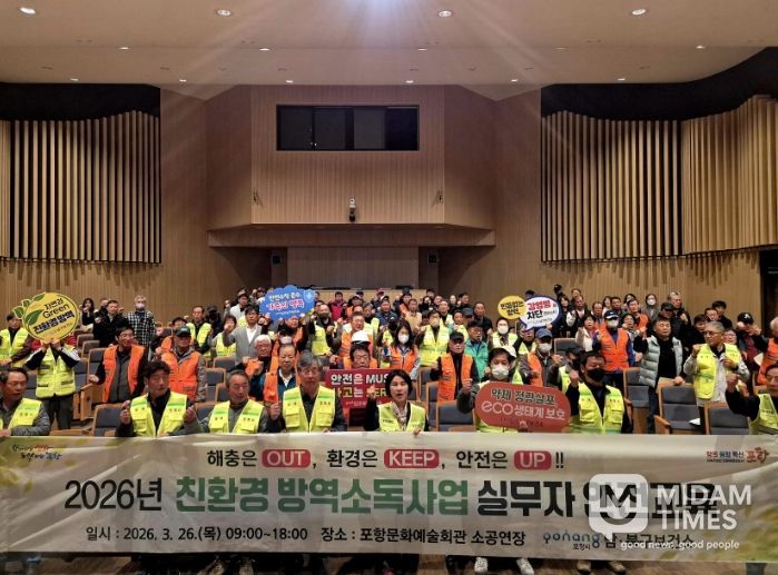 미담타임스 김준완 기자 | 포항시 남·북구보건소는 실질적인 안전 방역 활동과 안전보건 자율 이행을 위해 지난 26일 문화예술회관에서 ‘2026년 친환경 방역소독사업 안전교육’을 실시했다.