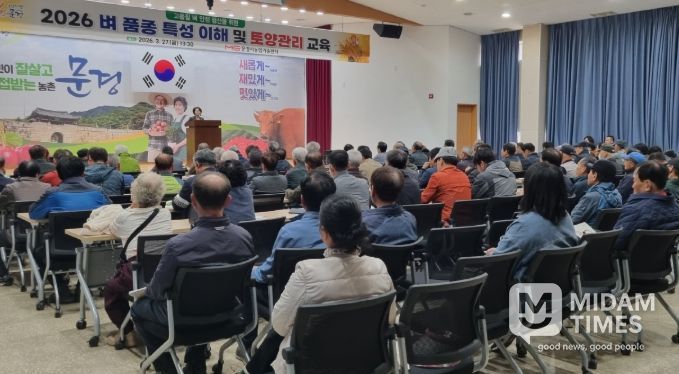 미담타임스 김준완 기자 | 문경시농업기술센터는 지난 27일, 문경시농업기술센터 대강당에서 벼 재배농가 100여 명 을 대상으로 ‘미소진품’ 벼 품종 특성 및 논토양 관리, 비료시비 요령 교육을 실시했다.