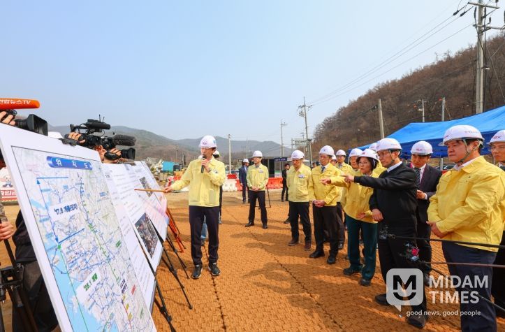 미담타임스 공한별 기자 | 김민석 국무총리는 3월 27일 오후, 작년 2월 25일 붕괴사고가 발생한 세종-안성 고속도로 현장을 방문하여, 국토교통부, 한국도로공사 등 관계기관과 함께 안전 점검을 실시했다.