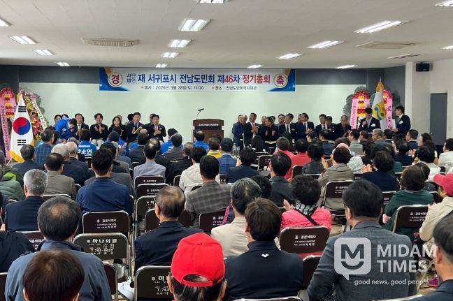 미담타임스 정인화 기자 | 오영훈 제주특별자치도지사는 28일 서귀포 전남도민회 복지회관에서 열린 사단법인 재서귀포시전남도민회(회장 장은술) 제46차 정기총회에 참석해 고향을 떠나 제주에 정착한 뒤 두 지역을 잇는 가교 역할을 해온 회원들에게 감사의 뜻을 전했다.